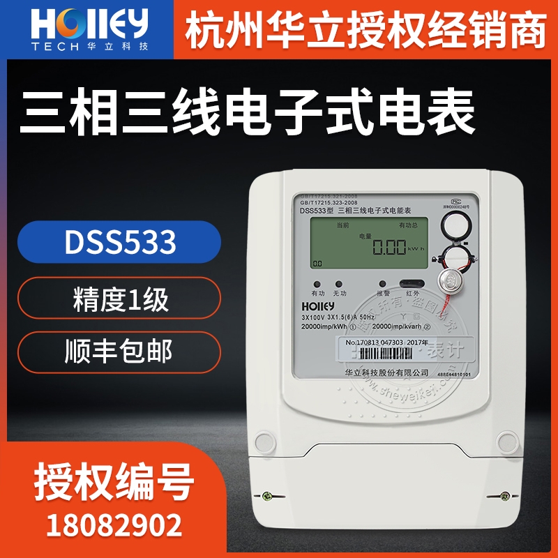 杭州华立三相电表DSS533 3×1.5(6)A 3×100V 1级三相三线电子式电能表