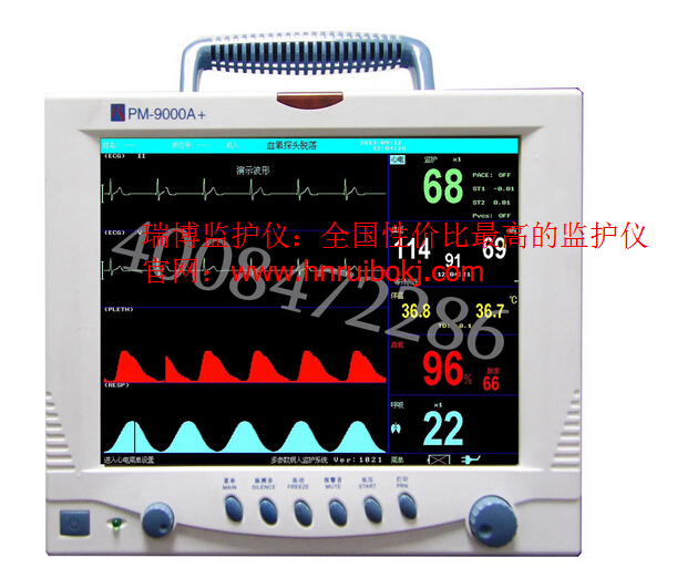 瑞博监护仪牌的湖南心电监护仪厂家,瑞博监护PM-9000A+多参数监护仪产品:估价:0,规格:完善,产品系列编号:齐全 发布日期:2014-6-1